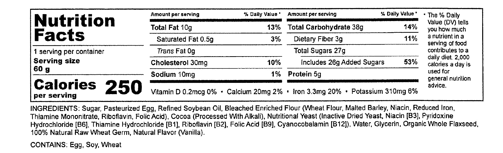 Ingredients: Sugar, natural flavor, malic acid, fruit & vegetable juice for color, stevia.Proprietary Herbal Blend: goat’s rue extract, fennel seed, blessed thistle.